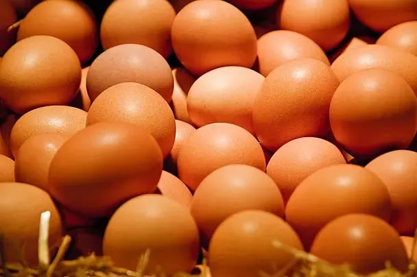 Huevos nutritivos con cáscara roja, frescura garantizada.